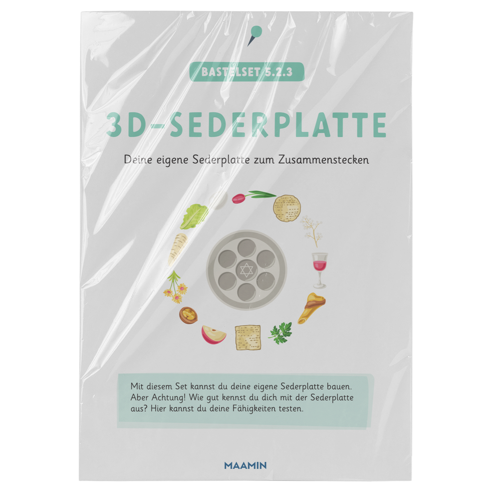 Mit diesem Set könnt ihr eure eigene 20-teilige Sederplatte zusammenbauen und am Sederabend benutzen. Dabei lernt ihr die hebräischen Bezeichnungen der symbolischen Speisen von der Sederplatte kennen. Mit eurer eigenen Sederplatte könnt ihr die Erwachsenen ganz bestimmt sehr beeindrucken. Also, worauf wartet ihr? Holt sie euch!